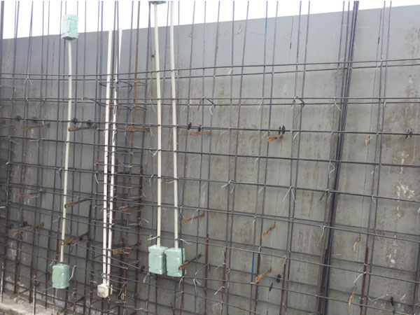 墻體采用背楞加對拉螺桿的方式加固,對拉螺桿需穿套管與膠塞堵頭;螺桿間距少于800mm。